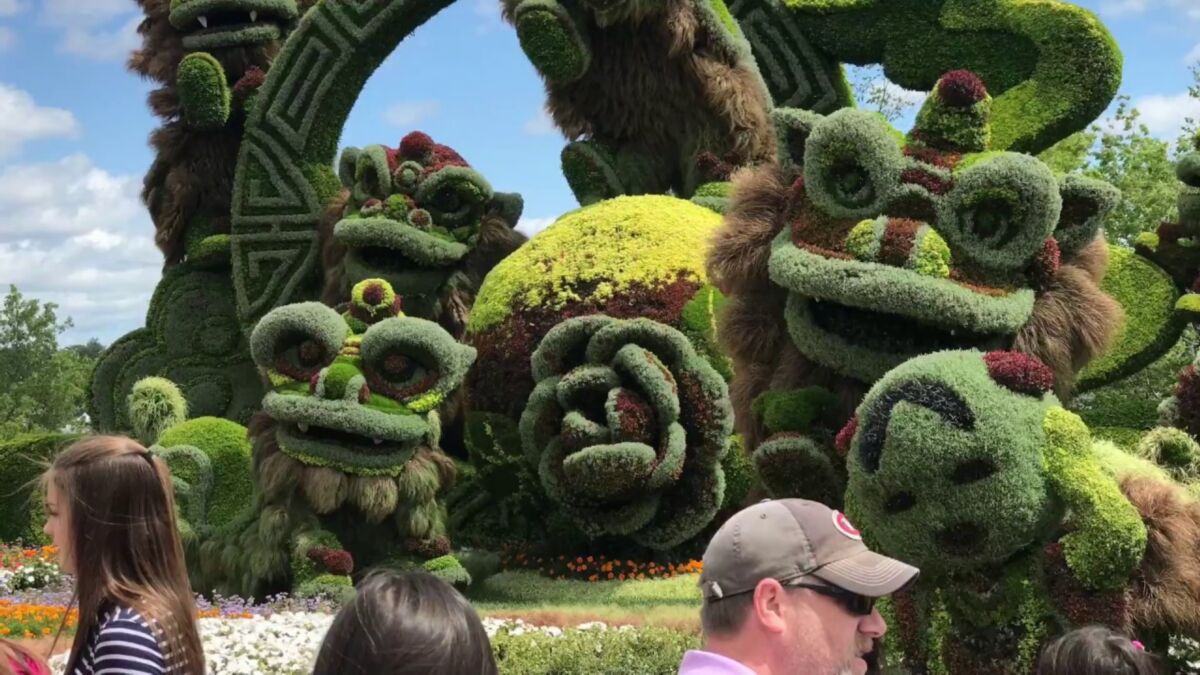 文化表达维度:以 “中国民俗文化(舞狮、节庆人偶)” 为创作原型,通过绿雕艺术还原传统民俗场景,旨在传承中国民俗文化的喜庆内涵,传递热闹、吉祥的文化氛围。艺术表现维度:采用绿雕工艺,利用不同种类、色彩的植物(如绿色植被塑造主体,红色、黄色植物点缀细节),精准塑造出舞狮的神态、人偶的动作与服饰细节,既保证了造型的立体感与逼真度,又通过植物材质赋予其生态艺术的独特质感,让民俗场景以自然艺术的形式生动呈现。空间融合维度:将绿雕置于花卉缤纷的园林空间,使 “民俗文化绿雕” 与 “自然花艺景观” 深度融合,既为游客打造了可观赏、可体验的文化艺术节点,又通过花卉与绿雕的色彩呼应,提升了景观的艺术层次与文化吸引力,实现 “文化传播” 与 “景观美化” 的双重价值。
