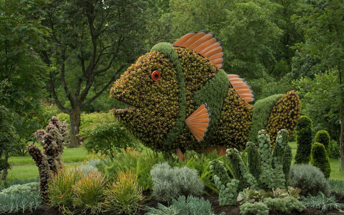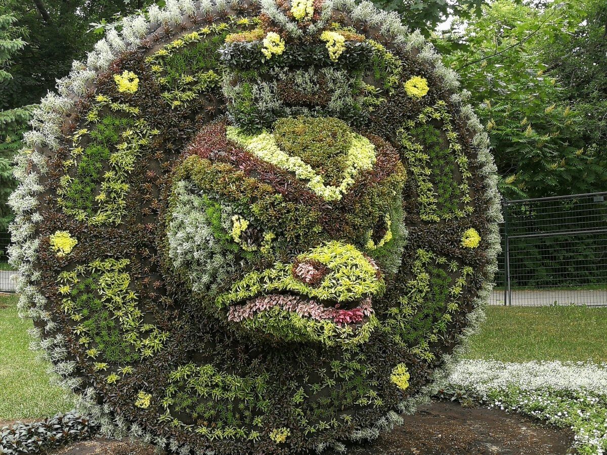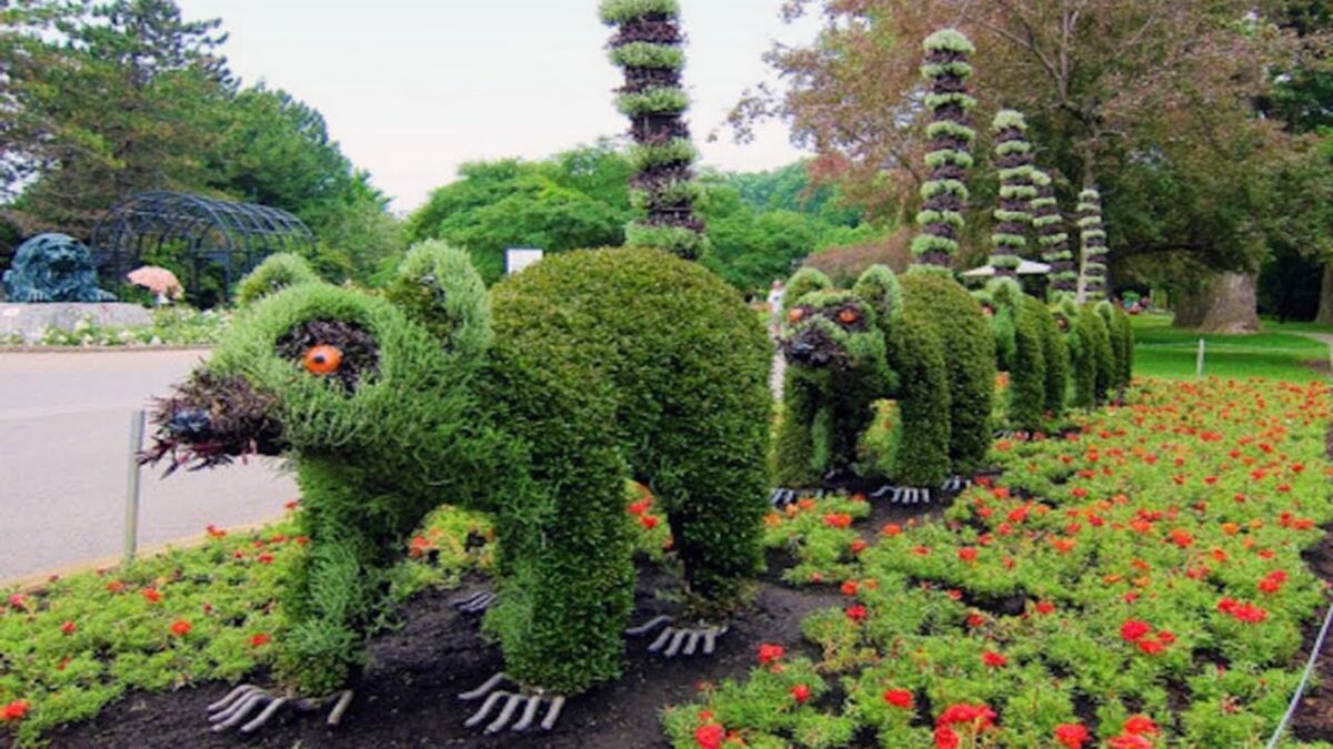 生态表达维度:以 “生物多样性与自然共生” 为核心主题,通过塑造 “生命之树” 与大量鸟类的绿雕场景,传递对自然生态、鸟类群落的敬畏与赞美,唤起人们对生物多样性保护的关注。艺术表现维度:采用复杂的绿雕工艺,利用不同种类、色彩的植物(如深浅绿色塑造树木层次,彩色植物点缀鸟类细节),精准呈现树木的枝干结构、鸟类的肢体形态与动态姿态,通过密集的鸟类造型与巨型树体的组合,营造出强烈的视觉冲击力,让生态场景以艺术化的形式极致呈现。空间融合维度:将绿雕置于水池中央与园林步道之间,使 “生命之树绿雕” 与 “水域景观”“游客空间” 深度融合,既为游客打造了可远观、可近赏的沉浸式艺术景观节点,又通过水域的倒影强化了绿雕的立体感与艺术氛围,提升了园林空间的生态艺术品位与吸引力。