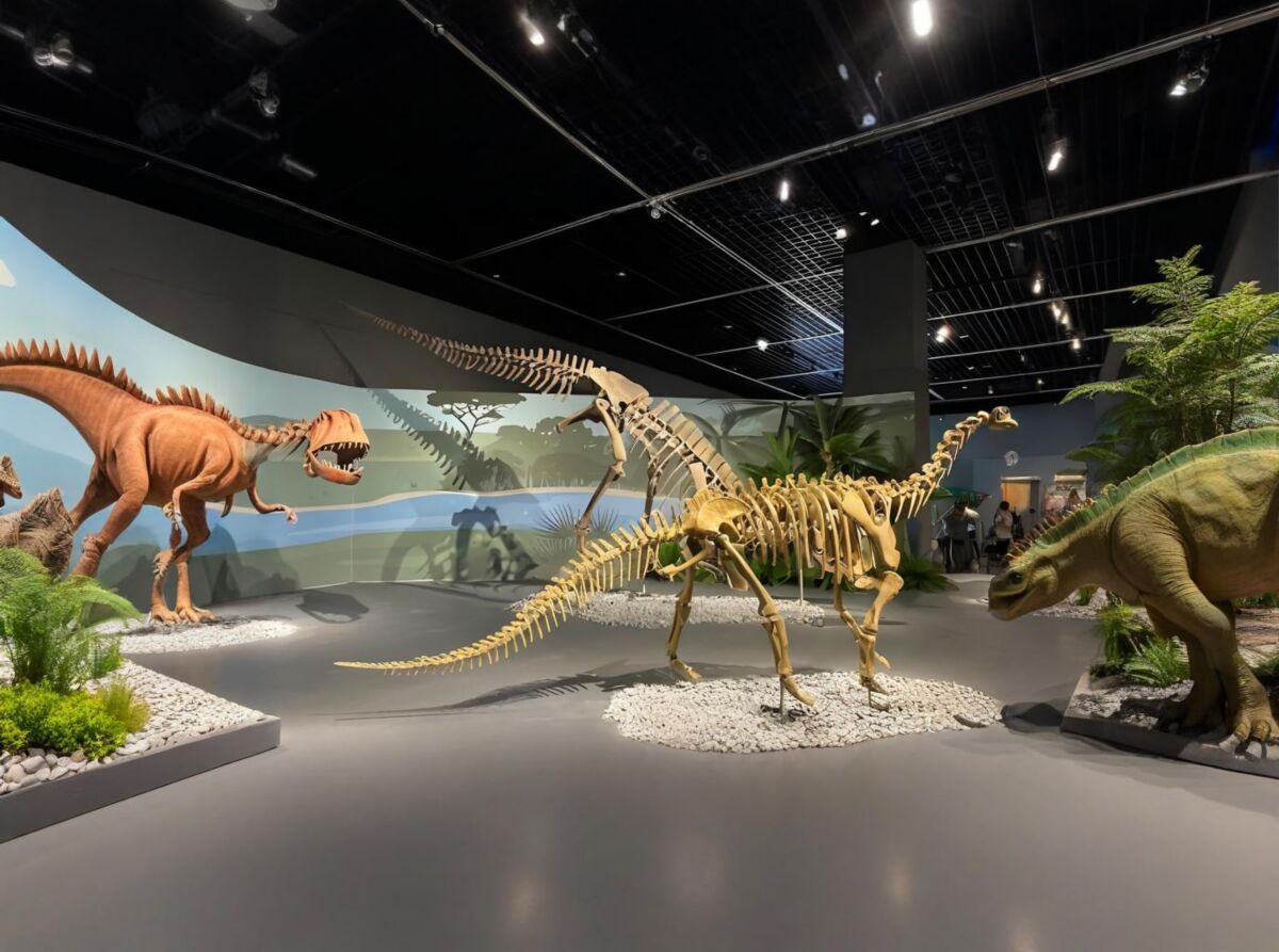 生态还原维度:以 “史前恐龙栖息地” 为核心主题,通过逼真的恐龙模型(如三角龙的形态细节)、丛林植被(棕榈树、蕨类)与背景壁画的组合,全方位还原恐龙生存的生态环境,传递恐龙时代的生态样貌,满足参观者对史前世界的探索欲。沉浸感营造维度:利用草坪、绿植、壁画构建出立体的 “丛林空间”,搭配恐龙模型的动态感(如三角龙的张嘴姿态),营造出沉浸式的场景体验,让参观者仿佛 “穿越” 到恐龙时代,增强科普与观赏的代入感。受众适配维度:针对亲子、恐龙爱好者等受众,通过直观的恐龙模型、可观赏的场景布局,将复杂的古生物知识转化为可感知的视觉体验,以趣味化、场景化的形式激发对恐龙科学的求知欲,实现 “科普教育” 与 “娱乐体验” 的融合。
