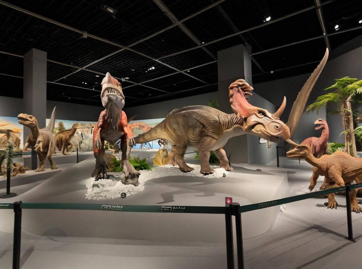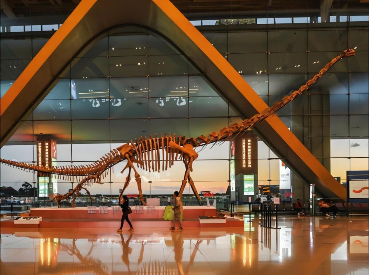 科学还原维度:以恐龙骨架化石为核心,通过精准的骨骼拼接与姿态还原,直观呈现恐龙的体型结构、运动特征,传递古生物解剖学与演化的科学知识,满足参观者对恐龙生理特征的探索欲。空间营造维度:利用博物馆的高阔空间与简洁的墙面设计,突出恐龙化石的视觉冲击力,让参观者能清晰观察化石的细节;同时搭配周边的古生物标本展柜,构建出 “史前生命演化链” 的展示逻辑,提升科普的系统性。受众适配维度:针对科研人员、古生物爱好者与普通观众,通过化石的直观呈现与展厅的科学布局,将复杂的古生物知识转化为可感知的视觉信息,既满足专业群体的研究需求,又能让大众轻松理解恐龙的生命形态,实现 “学术严谨性” 与 “大众科普性” 的平衡。